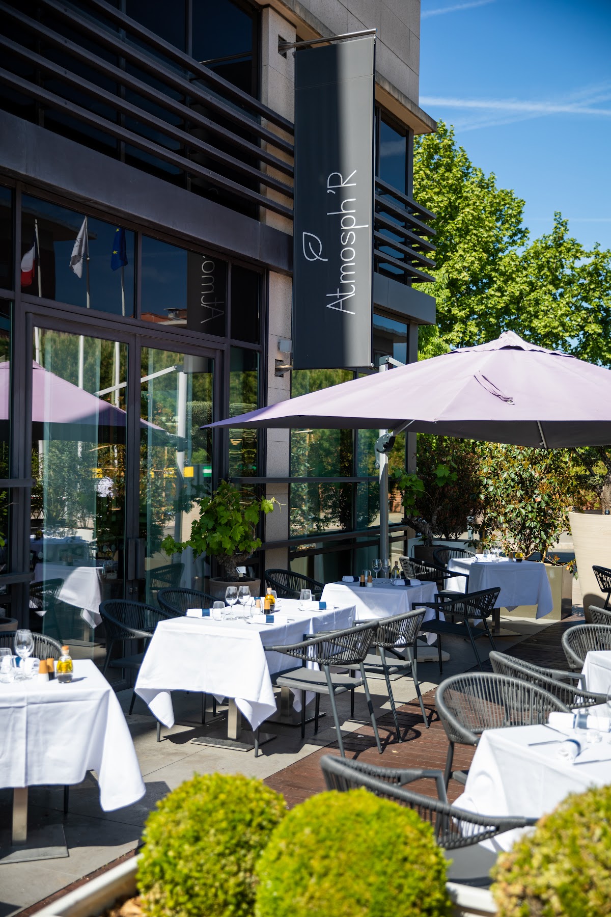 Ce restaurant d'hôtel chic et moderne avec terrasse sert des plats créatifs aux accents méditerranéens.