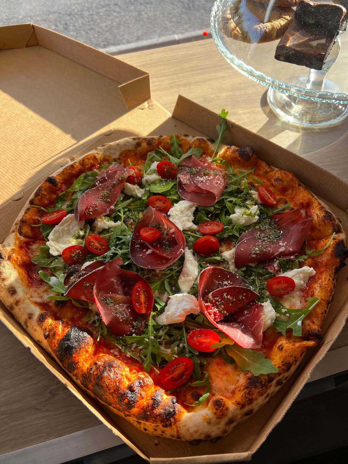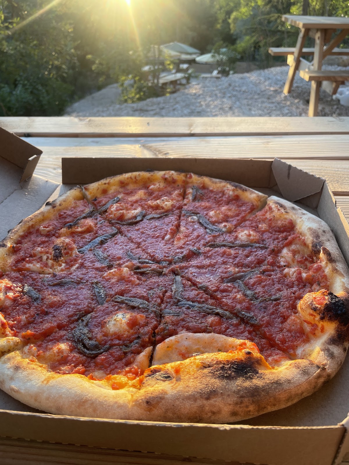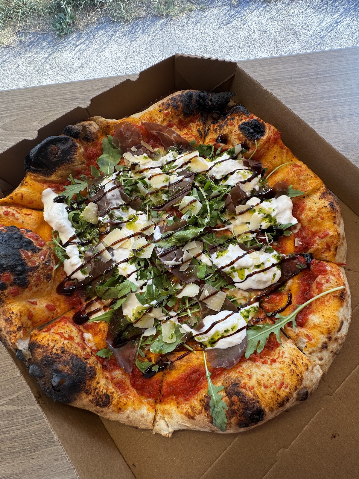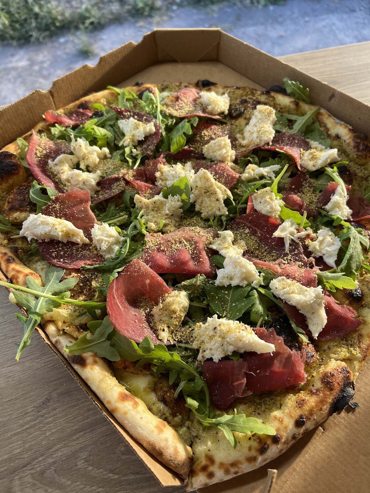 Pizza incroyable ! Pâte moelleuse et bien cuite au feu de bois Vraiment excellente !! La sauce tomate est parfaite 🌟