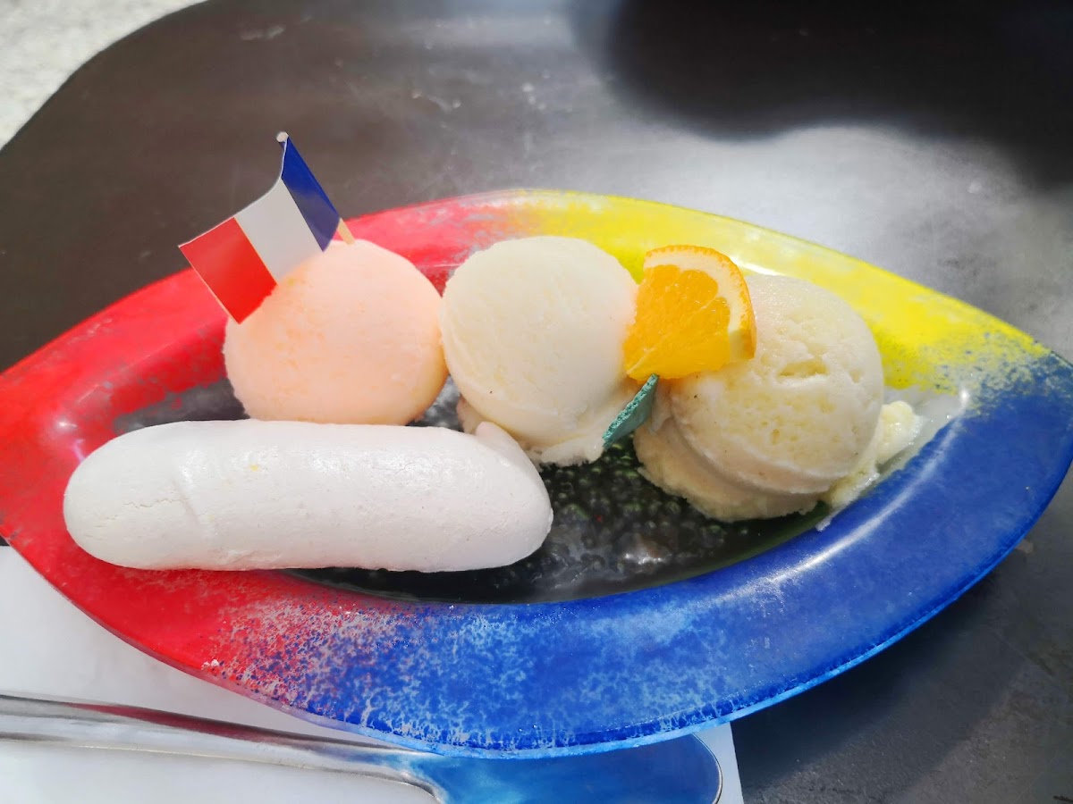 Jolie glacier avec vue incroyable. Des coupes merveilleusement décorées et choix de parfums très originaux comme piment , poivre du sechuan, lavande, rose, kalamansi, etc… Terrasse immense et ombragée avec fontaine centrale. Un bel endroit.