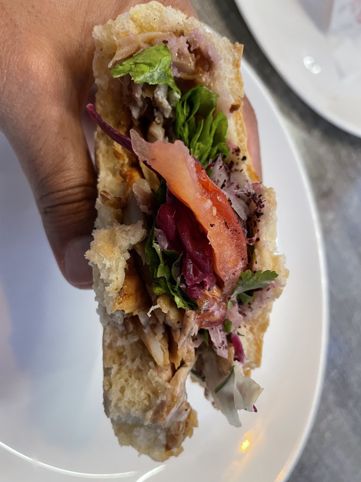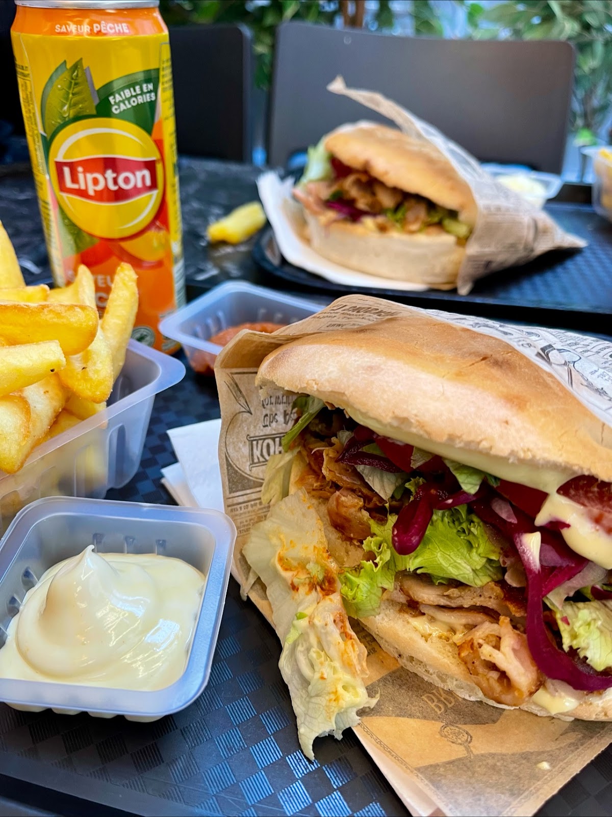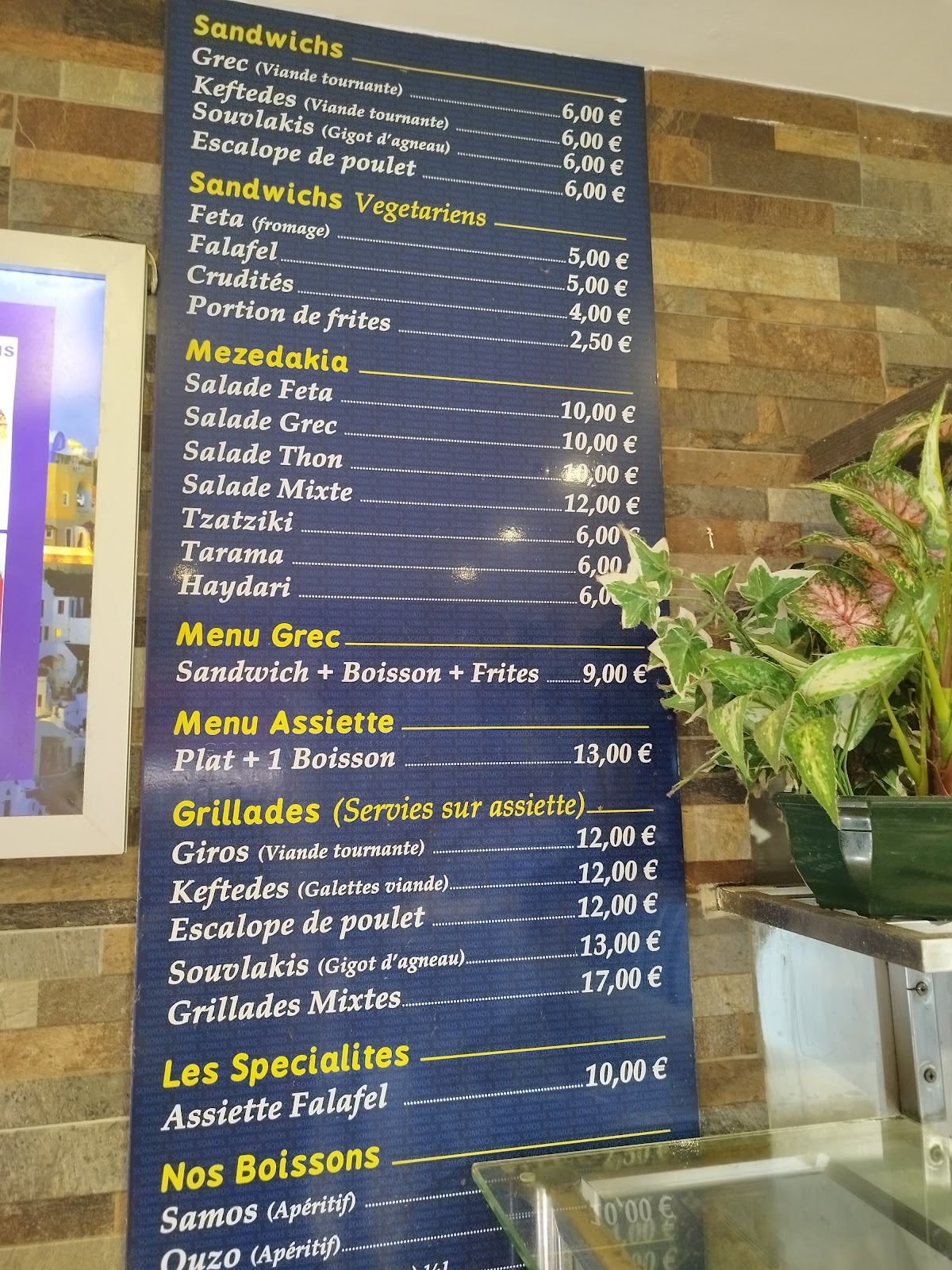 Les sandwichs sont pas mal mais pas non plus excellents. Les falafels sont sèches dommage, ce ne sont pas les meilleures que j"ai mangé. Cependant, le pain est maison et bon. C'est vraiment pas cher (5-6€ le sandwich) sauf les salades à un prix très excessif au vu de la qualité (13€ pour 1 salade) Au vu du prix , il ne faut pas s'attendre à un truc incroyable. Il ne prenne pas la carte. Je suis un commentaire après avoir pris la monnaie (donc après l'avoir toucher): il ne se lave pas les mains et fait la préparation ses sandwichs. L'hygiène est à revoir. J'ai vu des cafards mais pas d'intoxication