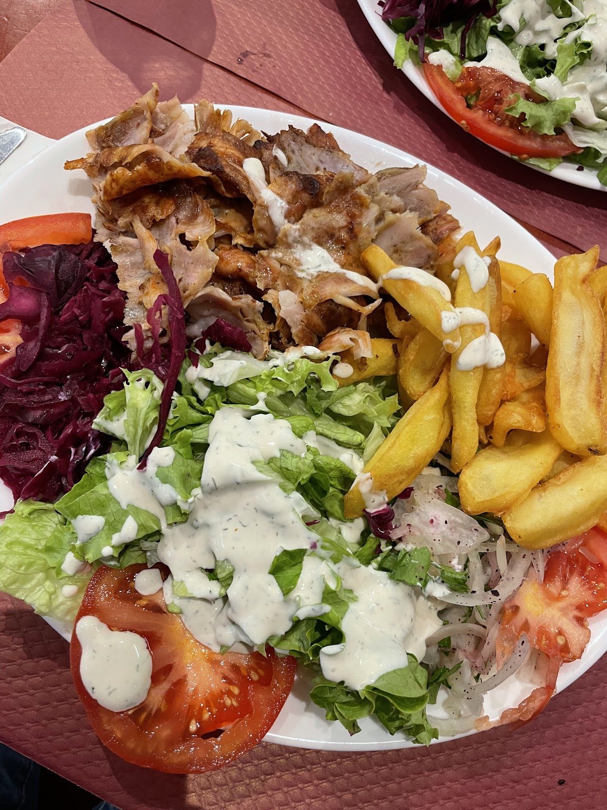 Cela faisait bien longtemps que l'on ne m'avais pas fait aussi bien l'amour. Et en me regardant droit dans les yeux. Ce grec est certainement l'un des meilleurs que j'ai eu plaisir à déguster, et j'en ai mangé des grecs. Quel plaisir de pouvoir, en plus, s'en rassasier en compagnie d'une bonne pinte de chouffe dans le bar d'en face. C'est tout simplement la vie qui prend tout son sens. Tendres baisers. Pierre