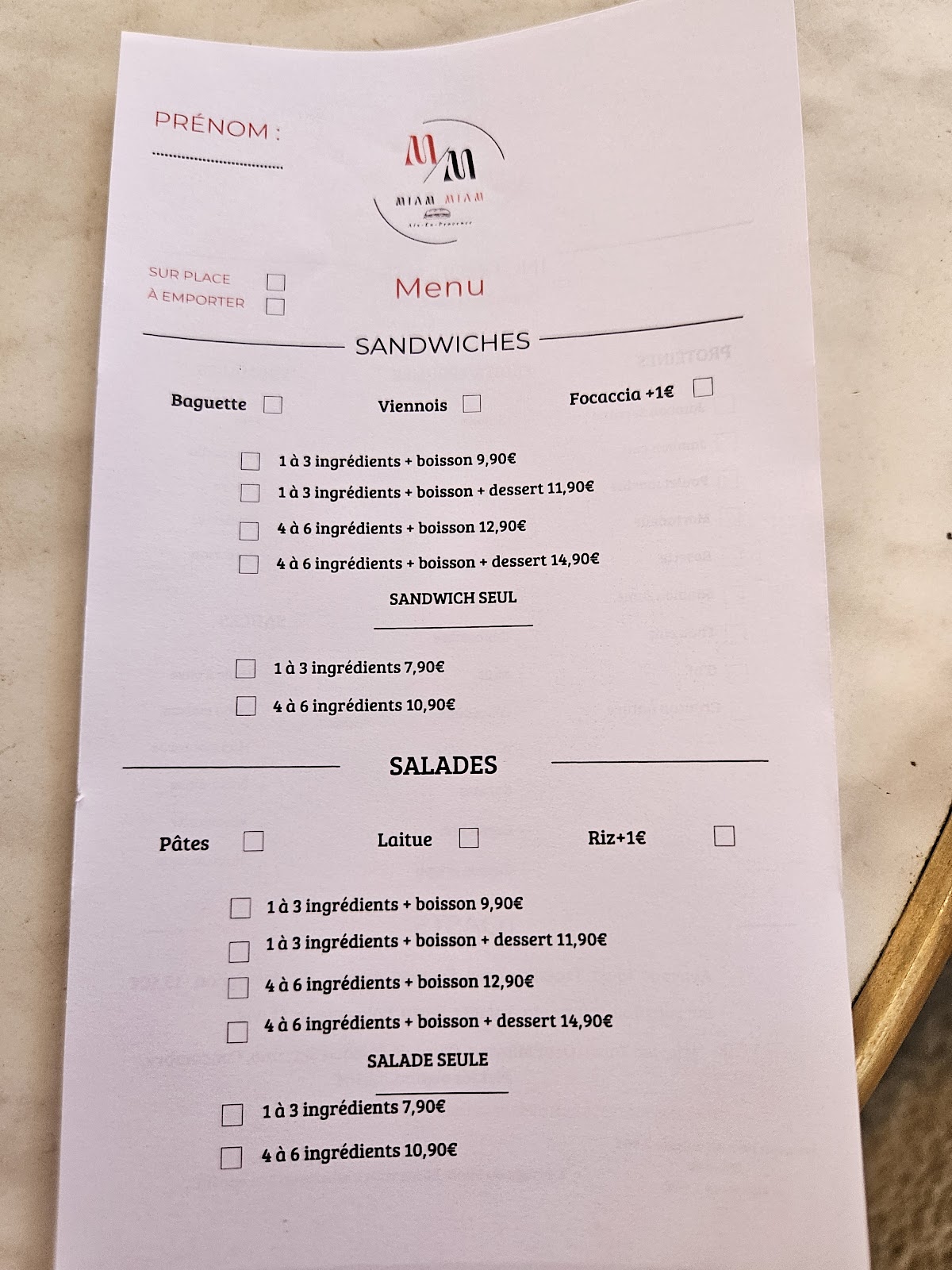 Bof bof…je suis déçu ,j’ai pris une focaccia emporté..13,90€ sans boisson ni dessert…trop chère et la garniture vraiment pas généreuse ,1 tranches de charcuterie ,1 feuille de salade et quelques olive