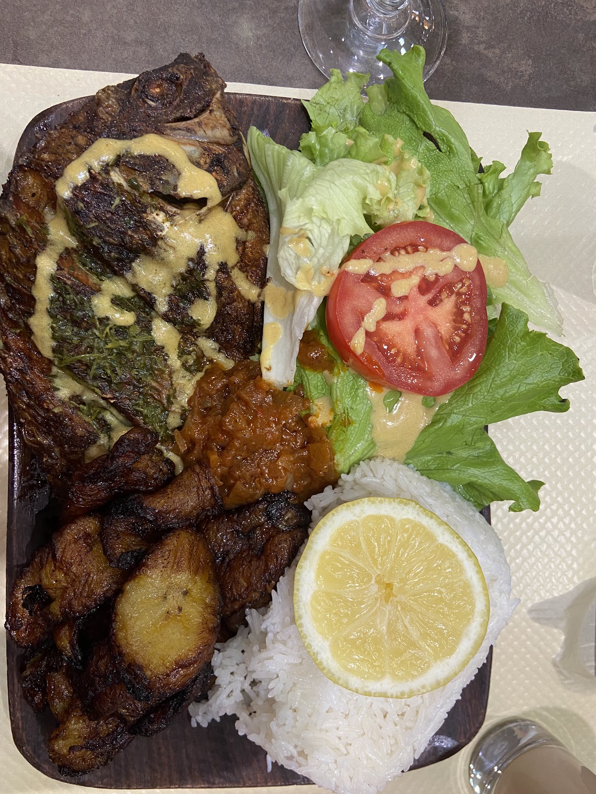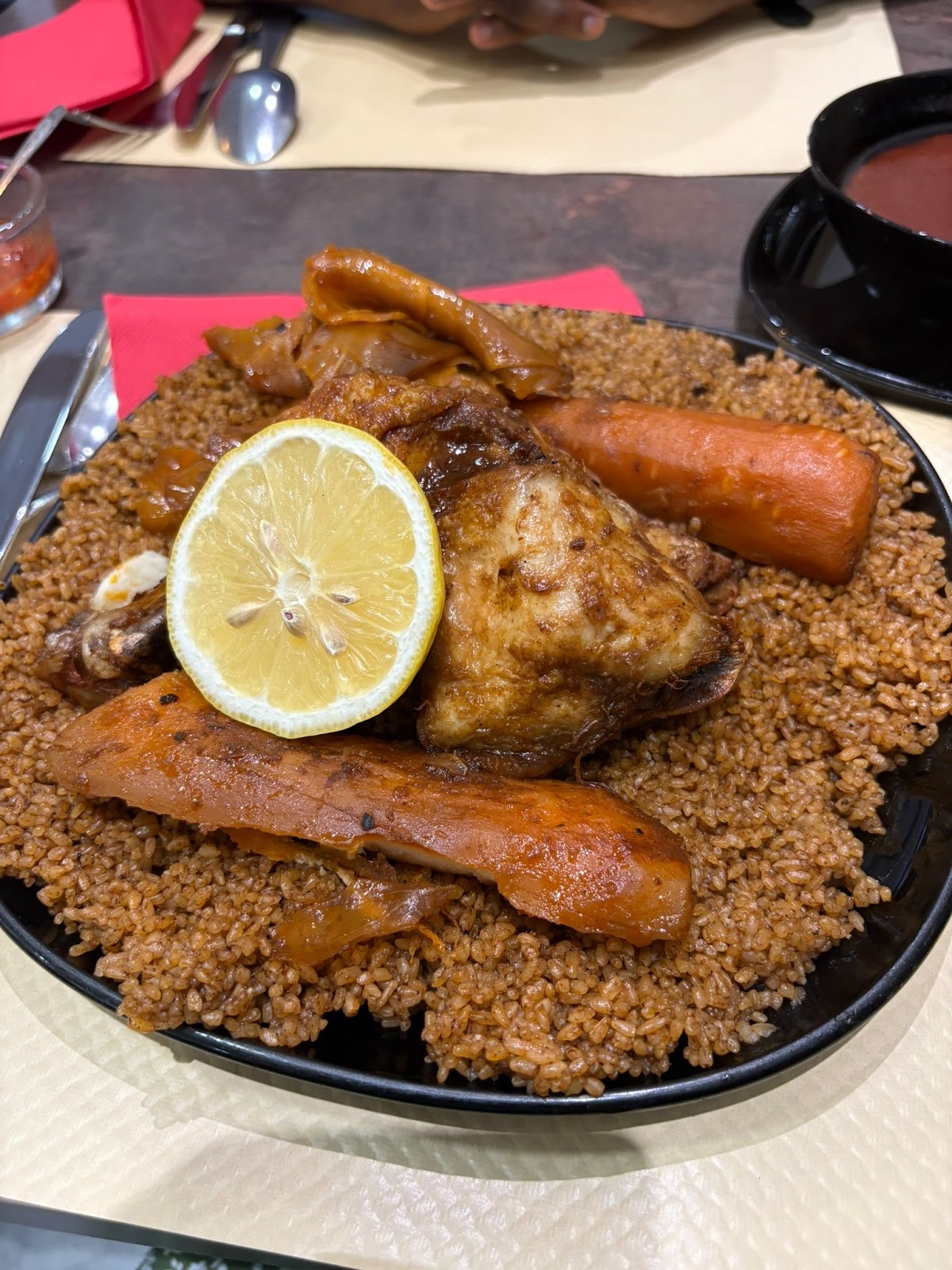 Nous avons commandé deux thiéboudienne et un attiéké : une catastrophe. Les légumes du thiéboudienne étaient brûlés, le poisson complètement noir. Je suis d’origine sénégalaise et je n’ai jamais vu un plat aussi raté. Quant à l’attiéké, le poisson était frit au lieu d’être braisé. La qualité a clairement chuté, c’est vraiment dommage.